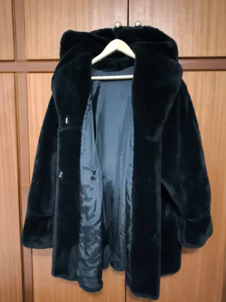 Elegante abrigo de imitación visón en color negro. Su tacto suave y diseño lo hacen una prenda destacada. - Material: imitación visón. - Cierre con botones. - Diseño clásico.