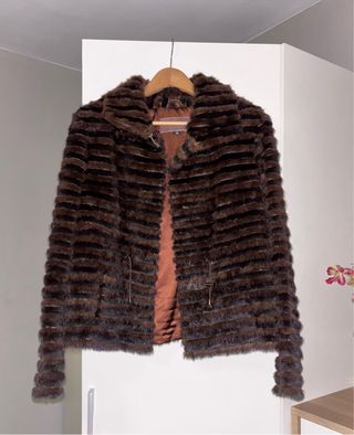 Chaqueta visón sintético rayas marrones