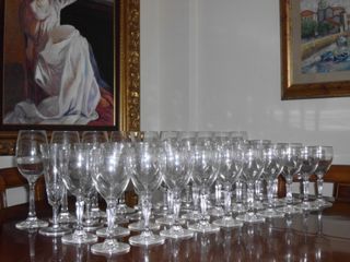 Bonita cristalería completa en fino cristal compuesta por 112 piezas ,tiene copas y vasos de todo tipo, de agua, de champagne ,de diversos vinos,de licor, whisky , coñac y vasos de tubo de varias clases ,se le ha dado poquísimo uso ,envio a toda españa por 25 euros de gastos de envio. Mirar en mi perfil mis otros anuncios,vendo todo el contenido de mi chalet , todo tipo de cosas de arte y decoracion de estilo clasico , cuadros , mesas de madera y cristal , esculturas , porcelana , jarrones , cristal , cabecero , mesilla , abrigos de zorro y vison , bolsos de señora , ...