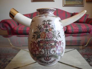 Precioso jarron de porcelana marca suma , años 70 , filo oro , impecable estado , mide 29 cm de alto ,entrego en mano en Logroño o envio a toda España por 10 euros de gastos de envio. Mirar en mi perfil mis otros anuncios,vendo todo el contenido de mi chalet , todo tipo de cosas de arte y decoracion de estilo clasico , cuadros , mesas de madera y cristal , esculturas , porcelana , jarrones , cristal , cabecero , mesilla , abrigos de zorro y vison , bolsos de señora ,....