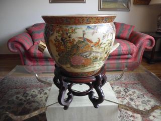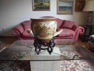 Entrego en mano en Logroño o envio a toda España por 20 euros de gastos de envio. Precioso jarron de porcelana chino ,años 80 ,costo 105.000 pesetas de la epoca ,impecable estado ,magnifico trabajo de pintura y sus detalles ,altura aproximada 50 cm con soporte de madera ,30 cm solo el jarron ,anchura del jarron 38 cm , peso de todo 11 kg. Mirar en mi perfil mis otros anuncios,vendo todo el contenido de mi chalet , todo tipo de cosas de arte y decoracion de estilo clasico , cuadros , mesas de madera y cristal , esculturas , porcelana , jarrones , cristal , cabecero , mesilla , abrigos de zorro y vison , bolsos de señora , ...