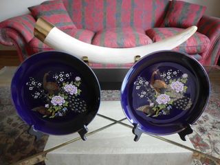Conjunto de 2 platos decorativos de porcelana japonesa de la mas fina calidad ,años 80 ,impecable estado ,precio 25 euros los 2. Entrego en mano en Logroño o envio a toda España por 10 euros de gastos de envio. Mirar en mi perfil mis otros anuncios,vendo todo el contenido de mi chalet , todo tipo de cosas de arte y decoracion de estilo clasico , cuadros , mesas de madera y cristal , esculturas , porcelana , jarrones , cristal , cabecero , mesilla , abrigos de zorro y vison , bolsos de señora , ...