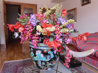 Jarron con flores artificiales ,mide 43 cm de alto con las flores ,entrego en mano en Logroño o envio a toda España por 10 euros de gastos de envio Mirar en mi perfil mis otros anuncios,vendo todo el contenido de mi chalet , todo tipo de cosas de arte y decoracion de estilo clasico , cuadros , mesas de madera y cristal , esculturas , porcelana , jarrones , cristal , cabecero , mesilla , abrigos de zorro y vison , bolsos de señora , ...