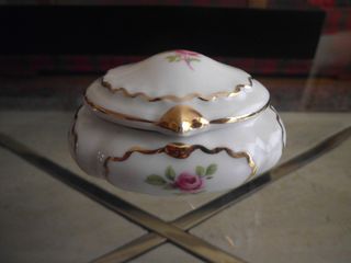 Pieza o cajita de porcelana fina de la marca española jambo ,filo oro ,años 70 ,impecable estado .Entrego en mano en Logroño o envio a toda España por 10 euros de gastos de envio Mirar en mi perfil mis otros anuncios,vendo todo el contenido de mi chalet , todo tipo de cosas de arte y decoracion de estilo clasico , cuadros , mesas de madera y cristal , esculturas , porcelana , jarrones , cristal , cabecero , mesilla , abrigos de zorro y vison , bolsos de señora , ...