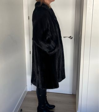 Abrigo vintage sintético de tacto suave imitación vison y aspecto lujoso El Corte Inglés. Prenda elegante y atemporal. - Alta calidad. - Estilo acampanado. - Diseño clásico con cuello. - Cierre frontal con ganchos. - Perfecto estado. Usado muy pocas veces. - Medidas: 140cm de contorno de pecho y 100cm de largo.