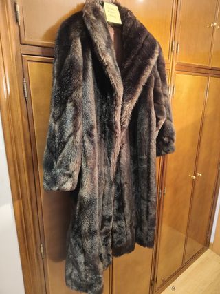 Precioso abrigo tipo visón de señora. Color marrón. Es una prenda elegante y cálida. Corte recto. Con bolsos. Está usado pero muy bien cuidado.