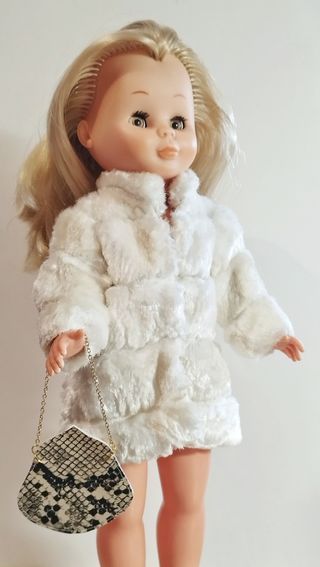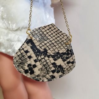 Reproducción del icónico bolso que lucía Nancy entre 1969 y 1974 con el conjunto "Noche de estreno" (abrigo visón). Con estampado tipo serpiente y cadenita dorada, es el complemento ideal para revivir la elegancia de aquellos primeros modelos.
