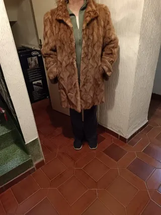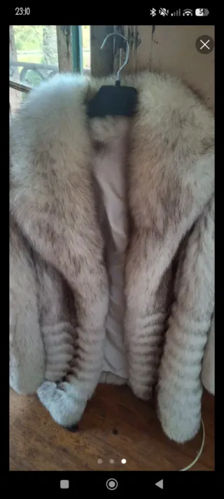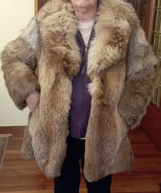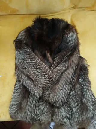 Elegante abrigo de pelo de zorro, perfecto para añadir un toque de distinción a tu vestuario. - Pelo de zorro auténtico. - Diseño con cuello amplio. - Tonos beige y grises y marrones Para mi gusto da menos talla seria como una S o M para que quede mas ancho