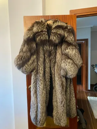Abrigo de zorro plateado, una pieza de edición limitada que destaca por su diseño y calidez. Da talla - Piel de zorro plateado. - Diseño de edición limitada. - Tonalidades marrones y plateadas.