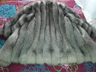 Abrigo de zorro argentino original. - Piel de zorro auténtica. - Diseño elegante y lujoso. - Zorro de Tierra del Fuego Largo de mangas 52 cm Largo de saco 82 cm