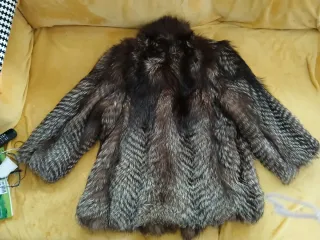Chaquetón de auténtica piel de zorro plateado. Comprado en peletería francesa: chez Bencho (Lyon). En uno de los laterales necesita ser recosido el cuero decorativo interior, como se puede ver en fotos. Ver fotos para hacerse idea de la talla.