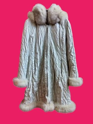 Parka o chaqueton de Michael Kors. Rellena de pluma y con capucha de pelo de zorro plateado. Talla Xl