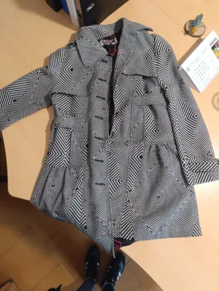 Abrigo de la marca Desigual con un diseño muy original, cada botón es diferente y lleva varios colores Es de muy buena calidad , me costó 200€ y muy calentito Está limpio y en perfecto estado Talla L de desigual pero es como una 42-44 Se puede ver y recoger en zona de Aluche o envío por wallapop No Rebajo ya está fenomenal de precio - Estampado abstracto en tonos negros y multicolor. - Cierre de botones. - Cuello solapa.