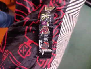 Abrigo iconico Desigual mujer estilo kimono geisha, diseño patchwork único con estampados japoneses florales, rostro geisha bordado espalda espectacular. Tejidos premium lana/seda mix: saten rojo vibrante, terciopelo negro, lino crudo, patrones paisley/orientales. Talla M (38 esp. 42-44, largo 90cm aprox, mangas 62cm). Estado excelente, apenas usado, sin manchas/desgastes/olores. Interior forrado rojo saten suave, cuello alto acolchado 3D, botones metal personalizados, bolsillos ocultos f - Estilo patchwork con múltiples tejidos y estampados. - Detalle de rostro de geisha en la espalda. - Combinación de colores vibrantes y oscuros.