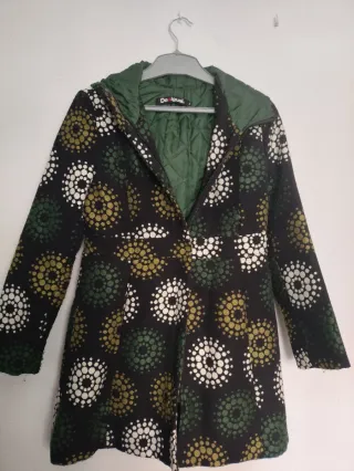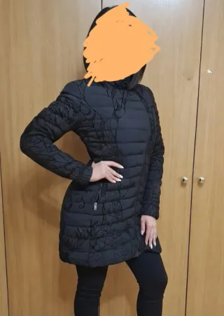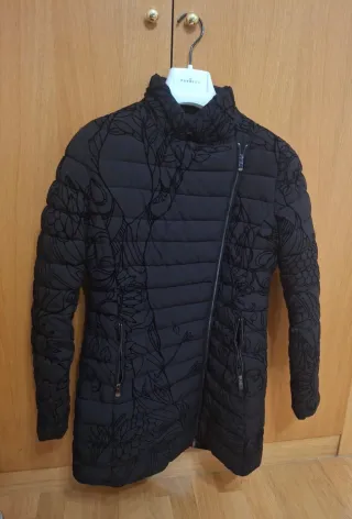 Abrigo de la marca Desigual, completamente nuevo a estrenar. - Diseño acolchado con acabado iridiscente. - Detalle de bordados florales en la parte delantera. - Cuello alto con forro interior suave. - Cierre de cremallera frontal. - Bolsillos laterales con cremallera. - capucha interior Lo vendo porque fue un regalo que me hicieron sin el ticket, y lamentablemente me queda pequeño.