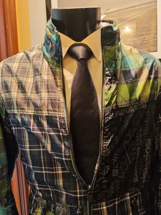 Preciosa chaqueta de la marca Desigual. Es una prenda única y llamativa, ideal para añadir un toque de estilo a tu armario. - Diseño original y colorido. - Confeccionada con materiales de alta calidad.