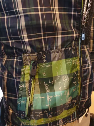 Cazadora con un diseño llamativo y original. - Estampado a cuadros. - Detalles en verde y multicolor.