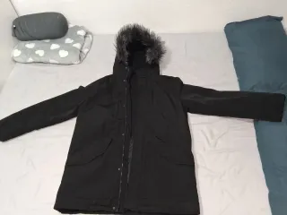 Chaqueta de invierno con capucha de pelo sintético. -felpa desmontable - Cierre de cremallera y botones - Bolsillos frontales con solapa. - Puños ajustables. -10/10 para invierno y lluvia.