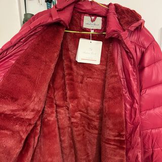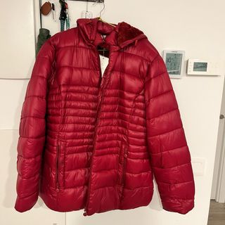 Chaqueta acolchada de color rojo con un forro interior de felpa en la capucha. - Cierre de cremallera. - Bolsillos laterales con cremallera. - Diseño acolchado horizontal.