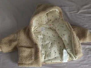 Chaqueta tipo sherpa con capucha – súper calentita para bebé de 3-6 meses Chaqueta beige de tejido tipo borreguito (sherpa), ideal para el invierno. Interior forrado en felpa suave, muy cómoda y abrigada. Lleva capucha amplia y puños elásticos para mayor ajuste y protección contra el frío. Corte relajado, perfecta para uso diario o para estar cómodo en casa. En muy buen estado, sin manchas ni desperfectos. ✅ Material: Poliéster suave ✅ Color: Beige claro ✅ Ideal para: otoño/invierno, climas fríos ✅ Estado: como nueva