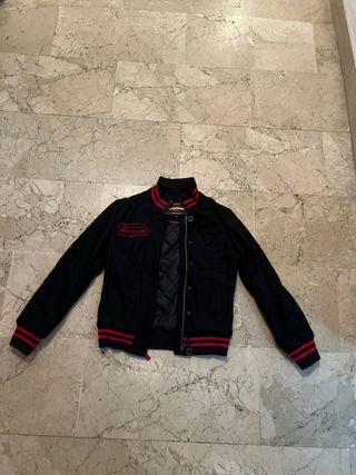 Chaqueta de felpa negra y con rayita blanca con botones talla xl