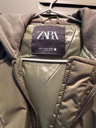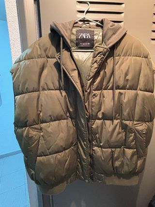Chaleco impermeable de Zara con capucha de felpa. - Diseño acolchado. - Cierre de cremallera. - Bolsillos laterales.