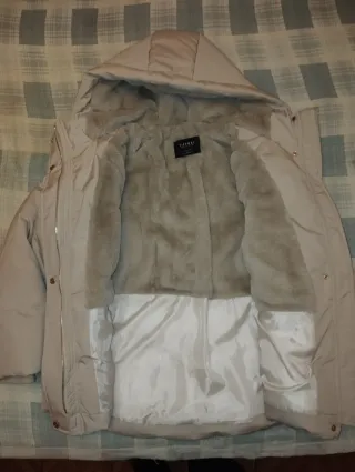 Chaqueta con felpa interior. Moderna y ponible. Suave al tacto. Poliester de composición. Marca Atakcadas, talla XL. A la modelo le está grande porque gasta una M-L.