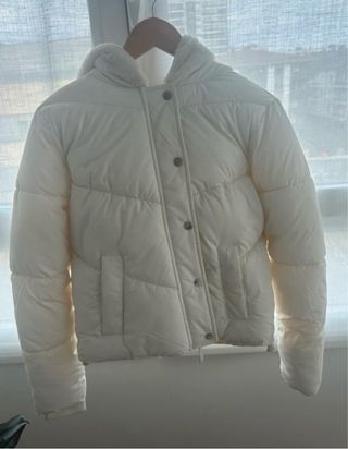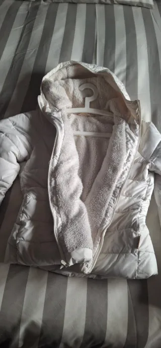 Abrigo acolchado de color blanco, perfecto para mantener el calor. - Forro interior de pelo suave. - Cierre de cremallera. - Capucha integrada.
