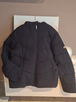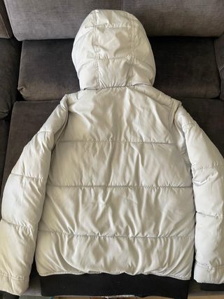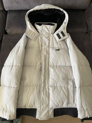 Abrigo acolchado con capucha de la marca Hollister. -Usado muy poco. - Cierre de cremallera frontal. - Bolsillos laterales con cremallera. - Forro interior suave,tipo forro polar ,tipo pelo. _Mirar fotos ,está tal cual se aprecia