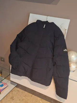Abrigo de la marca Hollister en color azul y talla XL. Perfecto estado, como nuevo. - Diseño con capucha. - Cierre de cremallera. - Bolsillos frontales. - Logo en las mangas.