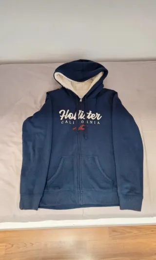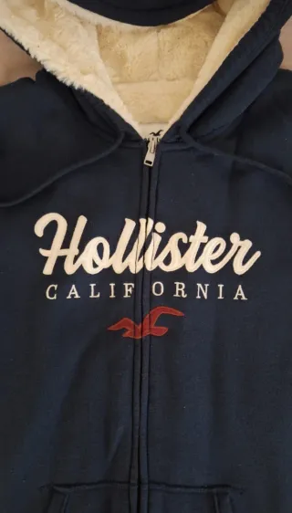 Chaqueta con capucha y cremallera completa. - Logo de Hollister en el pecho. - Cordones blancos en la capucha. - Bolsillos delanteros. - Medidas 69 de largo y 55 de axila a axila.