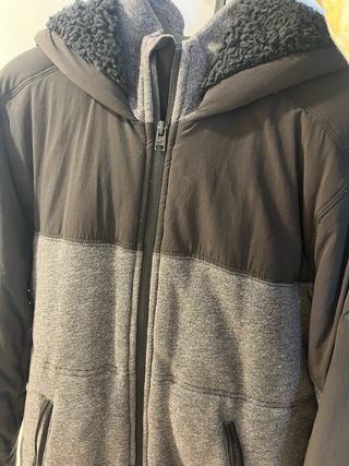 Abrigo Hollister talla L pero talla pequeño, no tiene etiqueta pero esta nuevo. Es de color negro, y forro calentito y muy suave. En ñas fotos no se ve tan negro como realmente es. Me queda muy pequeño y no lo pongo.