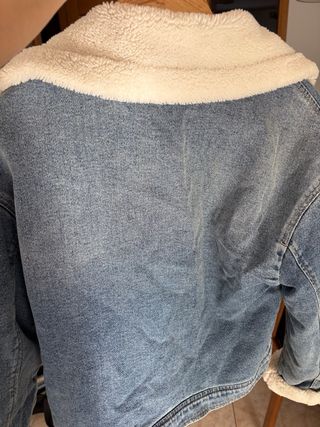 Chaqueta vaquera con forro interior tipo sherpa y capucha. - Cierre de cremallera. - Dos bolsillos en el pecho con botón. - Bolsillo canguro delantero. - Solo puesta una vez esta NUEVA!!