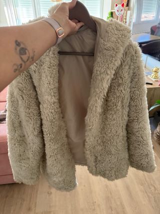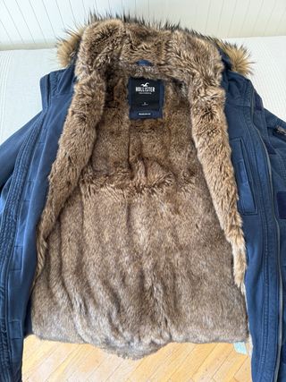 Abrigo sin uso, marca hollister,calentito de pelo, color marron talla s, equivale a 38-40.