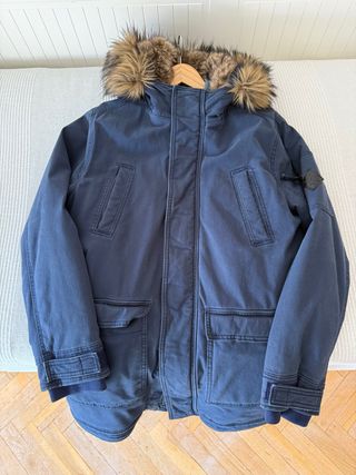 Parka de la marca Hollister en color azul, en excelente estado, usada solo un par de veces. me costó 220€ - Capucha con pelo. - Bolsillos frontales con solapa. - Puños ajustables.