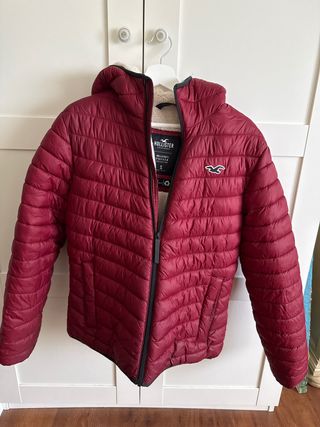 Chaqueta acolchada de la marca Hollister con un diseño moderno y cálido. - Color rojo vibrante. - Forro interior suave. - Logo de Hollister en el pecho.