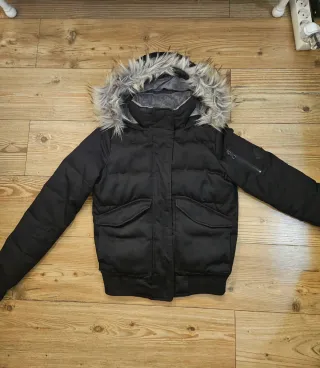 Abrigo talla xs de hollister 90% plumon de pluma de pato. Es super calentito. En muy buen estado