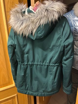 Abrigo verde botella de Hollister, no se aprecia bien el color pero es muy bonito. ajustable y térmico. Talla S-M