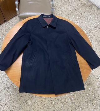 Elegante chaquetón para hombre, perfecto para ocasiones formales o casuales. - Confeccionado en una mezcla de lana y cachemira. - Diseño clásico con cuello - Cierre de botones al frente. - Puños con detalle de botón. Chaquetón 75% lana merina, 5% Cashemire Nunca se ha usado, está nuevo. Talla 54 Medidas: - hombro 48 cm - largo manga 66 cm - largo total 91 cm No se admiten cambios ni devoluciones