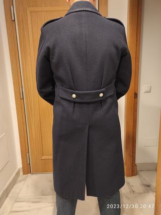Abrigo largo de la Armada Italiana, (lana). color azul Marino es espectacular, mido 1'80 y peso 82 kg. en las fotos se ve cómo queda. abriga telaaa, pone una M pero es más bien una L. (no XL.) Estás son las medidas Asilas 58 Manga asila 46 Hombros 47 Largo 120. muy bien cuidado.