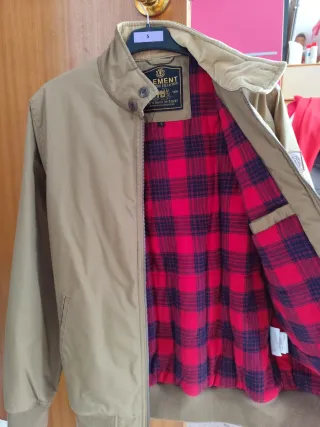 Cazadora de la marca Element. - Color beige con detalles interiores en rojo. - Cierre de cremallera. - Bolsillos laterales. - Parche con logo en manga.