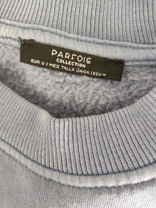 Sudadera manga corta de color celeste. Por dentro es abrigada. Talla única Largo: 55 cm Sisa: 50 cm Manga: 30 cm