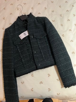 Abrigo ligero de Zara, perfecto para entretiempo. - Diseño de corte recto. - Cuello redondo. - Manga tres cuartos. - Bolsillos delanteros. - Acabado con textura tweed. - Da una talla M. Solo usado una vez