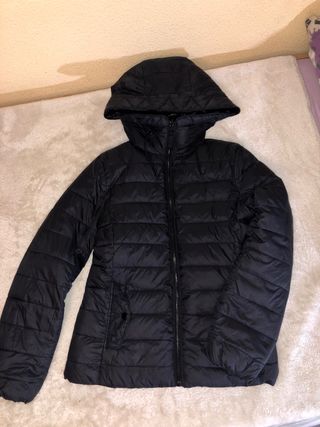 Chaqueton reversible sin estrenar, mate y brillo, con cordon para ajustar el gorro. Tiene bolsillos con botones por las dos partes. Tiene gomas en las mangas.