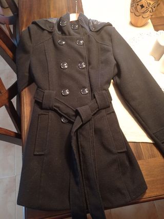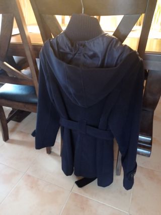 Abrigo de paño en azul marino, es abotonado, talla XL. Con capucha desmontable. Tiene un look estilo militar. Regalo la bufanda que aparece en las últimas fotos