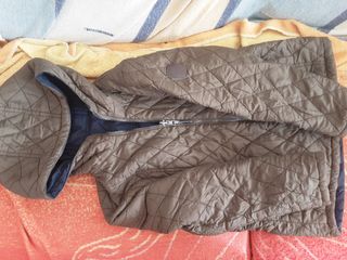 Chaleco reversible azul marino y verde militar. Usado unas diez veces. Rozadura en la espalda del lado azul (foto3). Medidas ancho 60cm, y largo 70cm