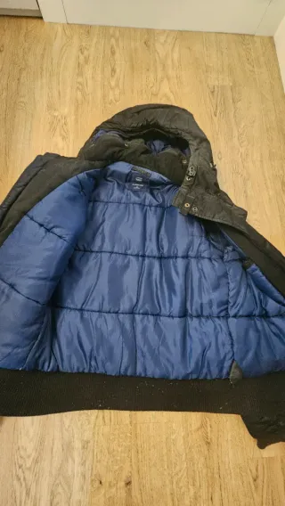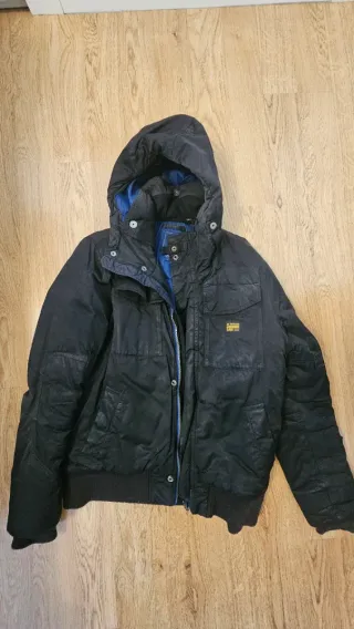 Título: Chaqueta G-Star RAW Originals - Talla L Descripción: Chaqueta técnica G-Star RAW Originals estilo bomber con acabado encerado resistente. Diseño militar con acolchado térmico de gran capacidad calorífica e interior en azul a contraste. Capucha: Alta y protectora con botones a presión. Ajuste: Cintura y puños acanalados anchos para aislar del frío. Bolsillos: Múltiples compartimentos frontales y laterales funcionales. Prenda robusta y urbana en muy buen estado. Cremalleras y botones impecables. Estilo "raw" original de la marca. Envío rápido o entrega en mano.