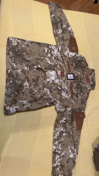 Chaqueta militar con estampado de camuflaje en tonos beige y blanco. Diseño práctico con varios bolsillos. Da más talla, una XL. - Estampado de camuflaje digital. - Cierre de velcro en puños y solapas. - Bolsillos frontales con solapa.