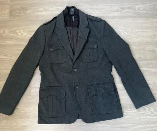 Chaqueta de estilo militar con múltiples bolsillos. A la venta porque a mí me queda pequeña. - Cierre de cremallera y botones a presión. - Cuello mao. - Bolsillos frontales con solapa. - Detalle de etiqueta en el pecho.