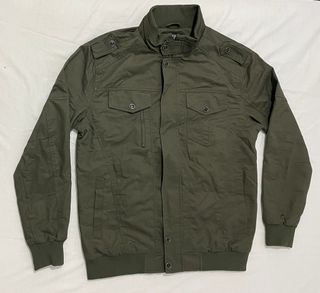 Chaqueta de estilo aviador con un diseño inspirado en la ropa militar. Presenta un cuello alto y un cierre de cremallera. - Bolsillos frontales con solapa. - Detalle de hombreras. - Puños y cintura elásticos.